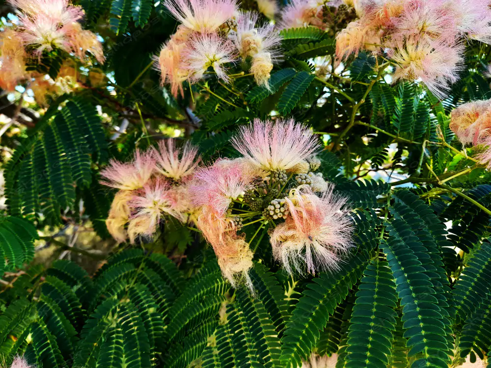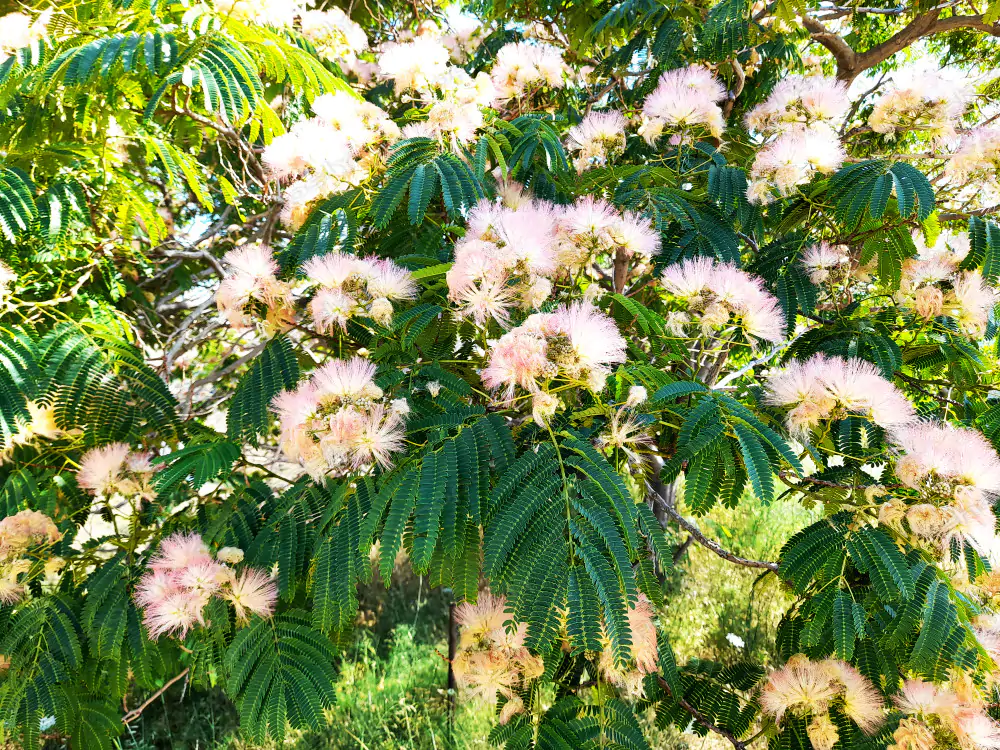 These photographs tell the story of a Silk Tree at its most radiant moment—when flowers and leaves unite in a breathtaking display of seasonal beauty. The pink blossoms, as light and delicate as whispers of summer air, contrast with the confident, structured greenery. Together, they create a visual and emotional symphony that speaks of peaceful afternoons, warm breezes, and the quiet, enduring elegance of nature.