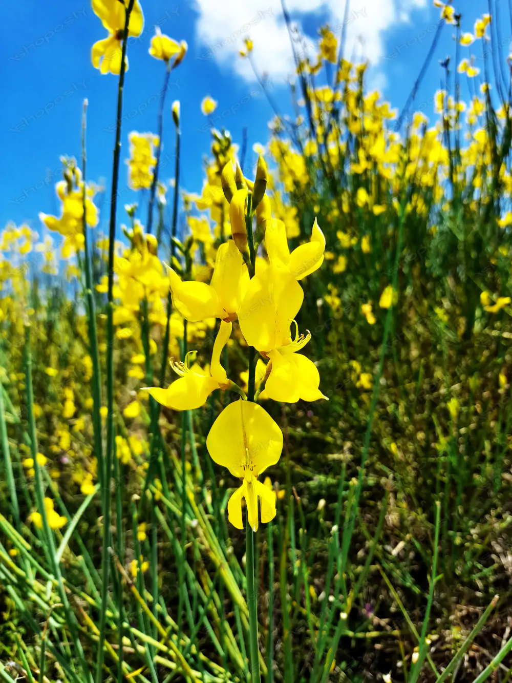 This exquisite ultra-high-resolution (4000 x 3000 px) photographic series features 6 real photos capturing the radiant beauty and intoxicating fragrance of Spanish Broom (Spartium junceum), a sun-loving perennial known for its vibrant golden blossoms and enchanting aroma. Set against the serene backdrop of a Mediterranean hillside, these images celebrate the elegance, texture, and natural artistry of this remarkable plant in its peak flowering season.
